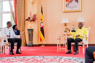الرئيس الأوغندي يوري موسيفيني يستقبل وفد حكومة السلام بقيادة محمد حمدان العزيز آدم الحلو
