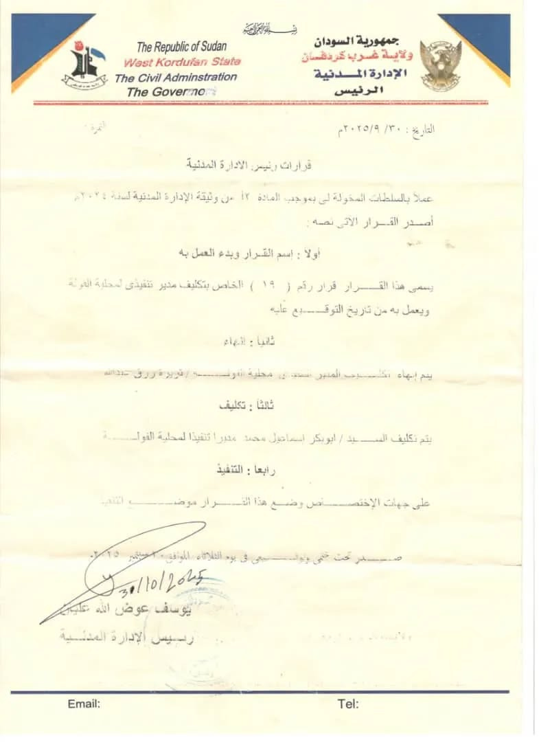أصدرتْ وزارةُ المالية والقِوى العاملة بولاية غرب كردفان بتأريخِ الاثنين الموافق 3 فبراير 2025م، الماضى قراراً قضى بإيقافِ مرتباتِ الآلاف من العاملين بالخدمةِ المدنية بتُهمةِ التّأييد والتّعاون مع قوات الدعم السريع معظمهُم من محلياتِ جنوب ولاية غرب كردفان وهى محليات ( الفولة وبابنوسة والمُجلد والدِّبب والميرم وكيلك ولقاوة والسُّنُوط) وهى محلياتٌ سيطرتْ قواتُ الدعم السريع على أغلبيتها دونَ مُقاومةٍ تُذكر بعد انسحاب الجيش منها فى بدايةِ حربهِم العبثيّة مع تلك القوات التى اندلعتْ فى الخرطوم بتأريخِ الخامسِ عشر من أبريل 2023م وانطلَقتْ كنارِ الهشيمِ لتعُمْ معظم أنحاءِ السودان.