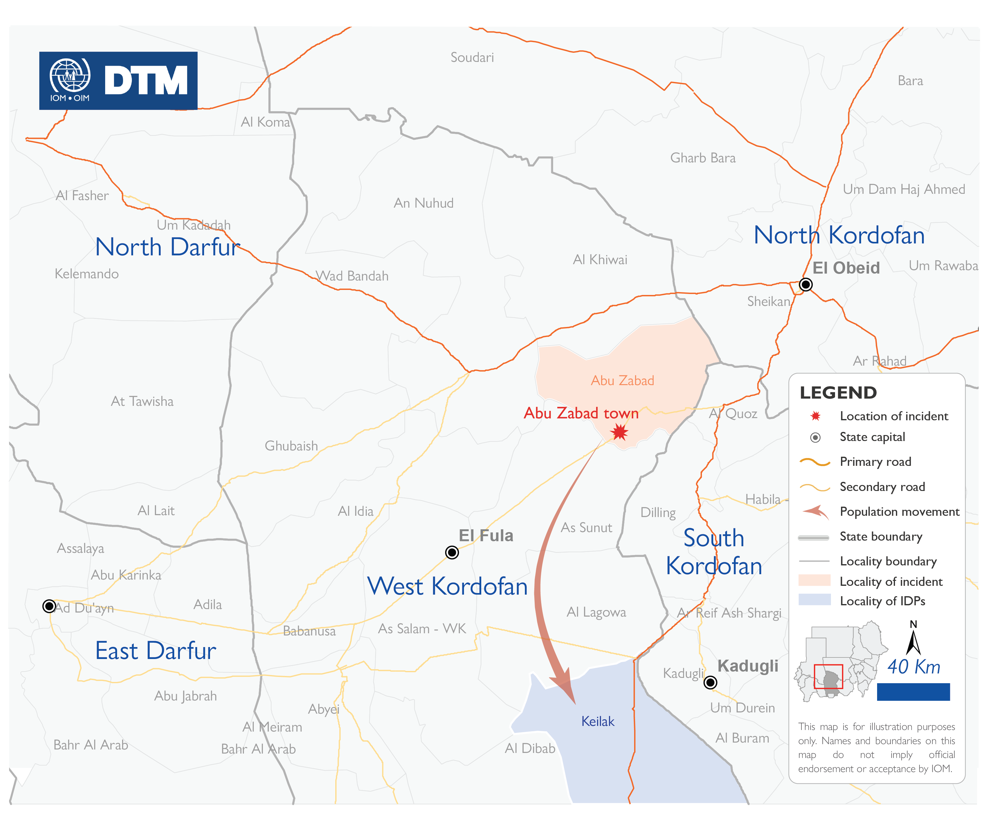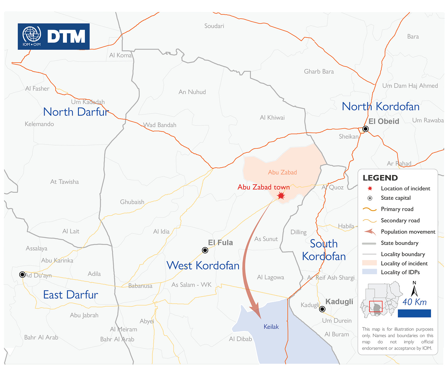 افادت المنظمة الدولية للهجرة أنها رصدت نزوح 120 شخصا من محلية ابو زبد بولاية غرب كردفان، يوم الجمعة 27 مارس 2026، بعد استمرار تدهور الأوضاع الأمنية في اقليم كردفان غربي البلاد.