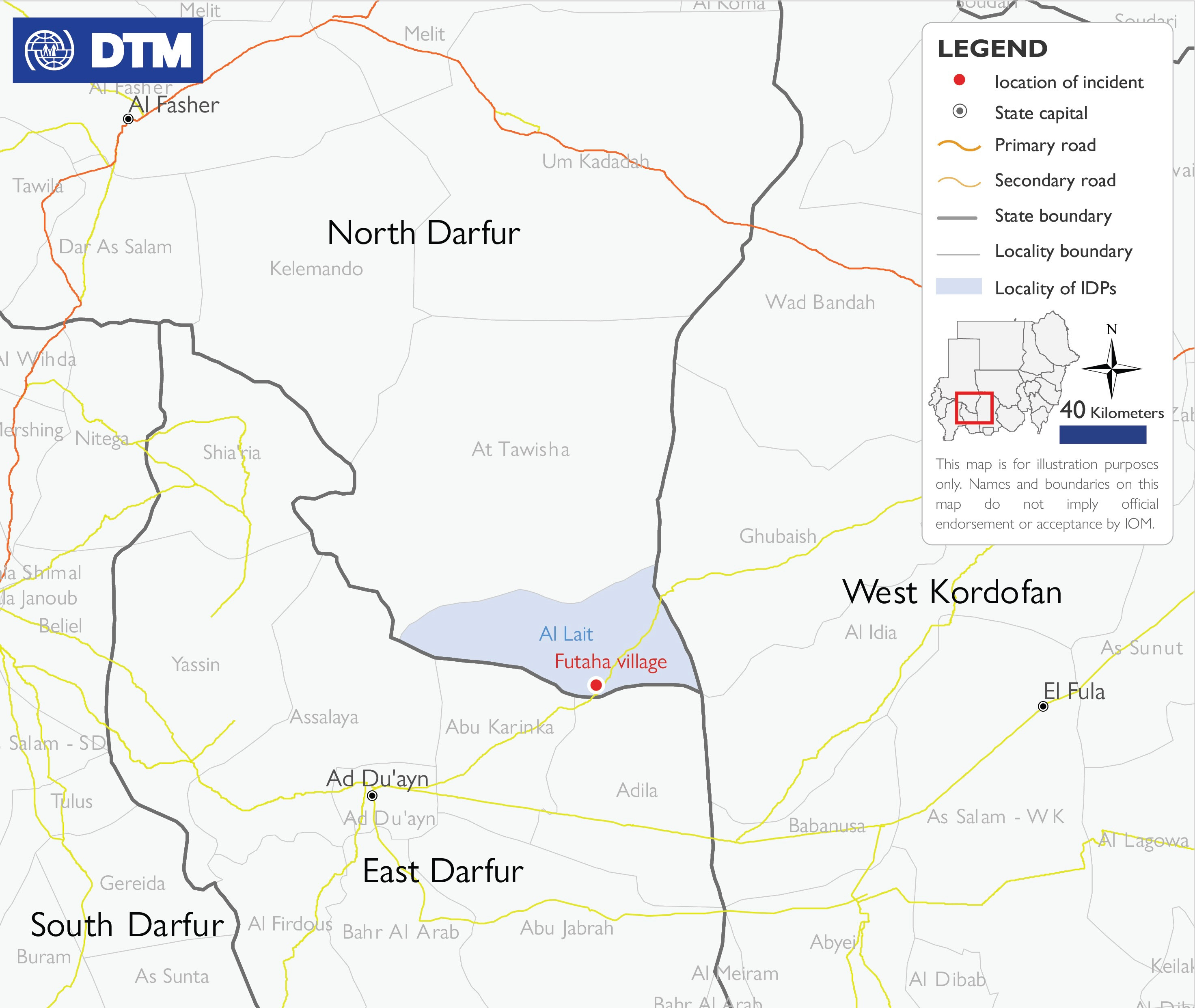 افادت المنظمة الدولية للهجرة باندلاع حريق يوم الثلاثاء 14 أبريل 2026، في وحدة فتاحة الادارية في محلية اللعيت بولاية شمال دارفور، ما ادى إلى نزوح 156 اسرة.