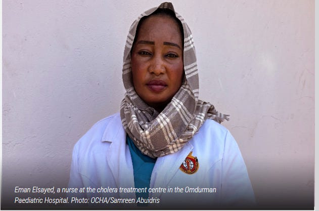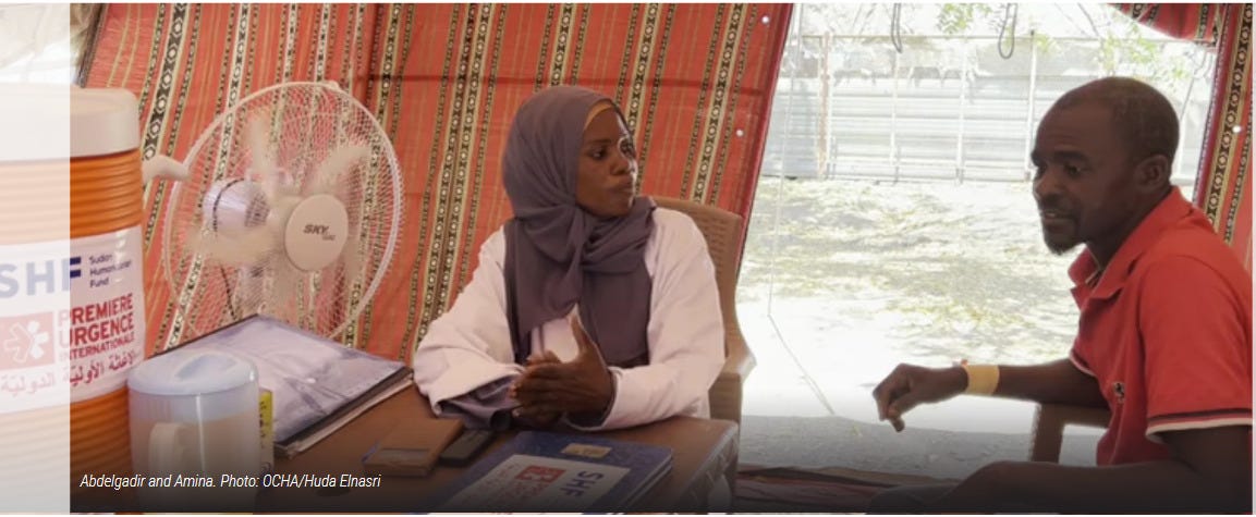 توجه عبد القادر إلى عيادة قريبة تديرها منظمة كير الدولية غير الحكومية، بدعم من صندوق السودان الإنساني (Sudan Humanitarian Fund) الذي يديره مكتب الأمم المتحدة لتنسيق الشؤون الإنسانية، في الداخل، كانت الممرضة أمينة تعمل بالفعل رغم كل الصعاب، وتتنقل بسرعة بين المرضى، وحسب اوتشا تُعد العيادة شريان حياة للعائلات النازحة بسبب النزاع، والتي تُكافح الآن تفشي وباء الكوليرا الفتاك.