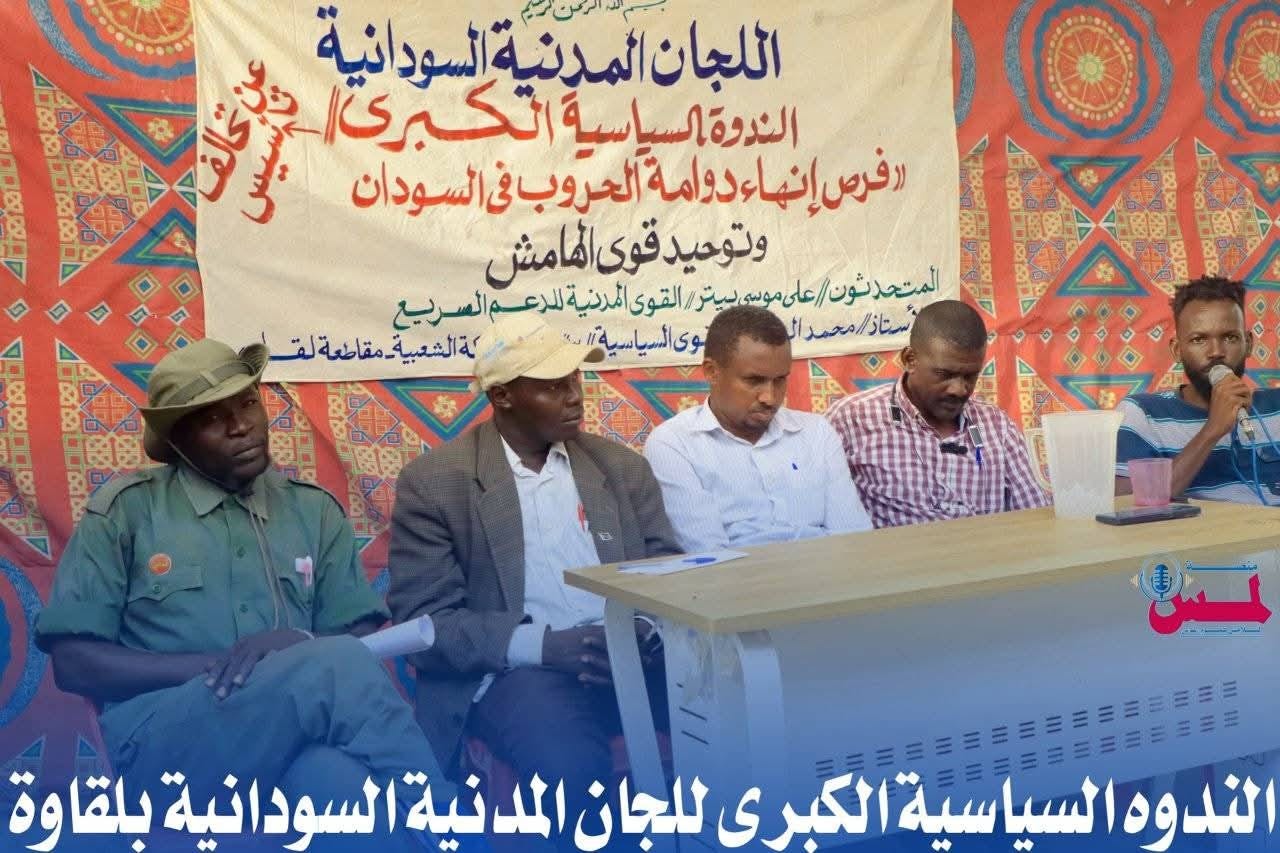 وفى سياقٍ آخر أقامت اللجانُ المدنية بولاية غرب كردفان يوم السبت الموافق الأول من نوفمبر ٢٠٢٥م ندوةً جماهيرية كبرى بمدينة لقاوة تحت عنوان ( تحالف تأسيس وفرص إنهاء دوامة الحروب فى السودان وتوحيد الهامش) ، تحدّث فى الندوة كلٌّ من : الكمرد شايب أبُوة سكرتير الحركة الشعبية بمقاطعة لقاوة، والدكتور موسى بيتر عن القوى المدنية للدعم السريع والأستاذ محمد الطاهر عن الأحزاب والقوى السياسية المشاركة فى تحالف تأسيس.