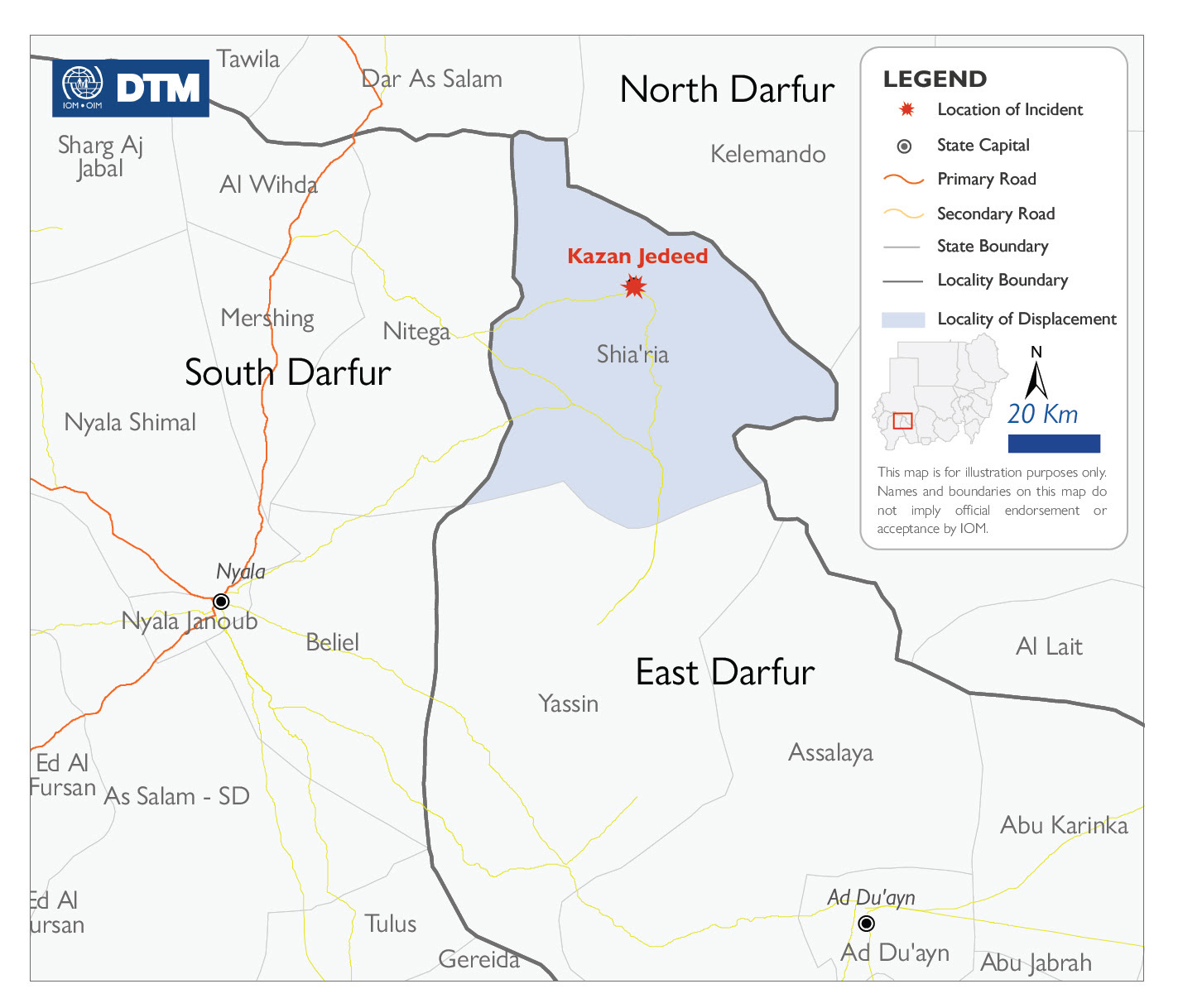 اكدت المنظمة الدولية للهجرة في بيان لها يوم الاثنين 2 فبراير 2026، أن فرقها الميدانية رصدت نزوح 330 شخصا من خزان جديد في محلية شعيرية بولاية شرق دارفور، نتيجة نزاع بين قبيلتي البرقد والفور.