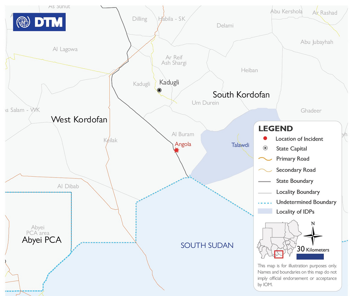 أفادت المنظمة الدولية للهجرة في بيان صدر يوم الاثنين 20 أبريل 2026، بنزوح 490 شخصا من قرية انغولا في محلية البرام بولاية جنوب كردفان نتيجة لتدهور الأوضاع الامنية.