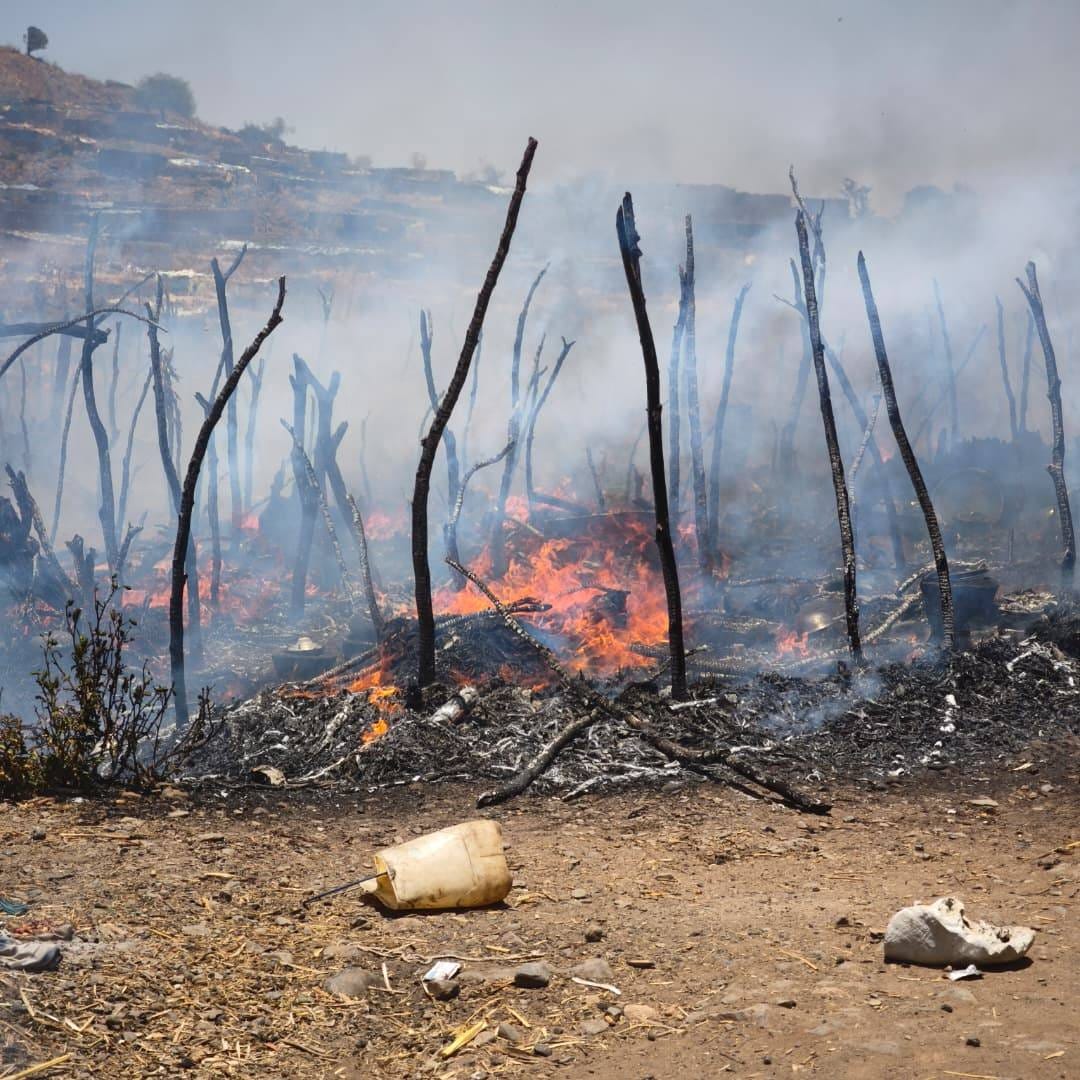 مشاهد لحريق نشب في مركز ايواء للنازحين في روكرو ’’ مواقع التواصل الاجتماعي ‘‘