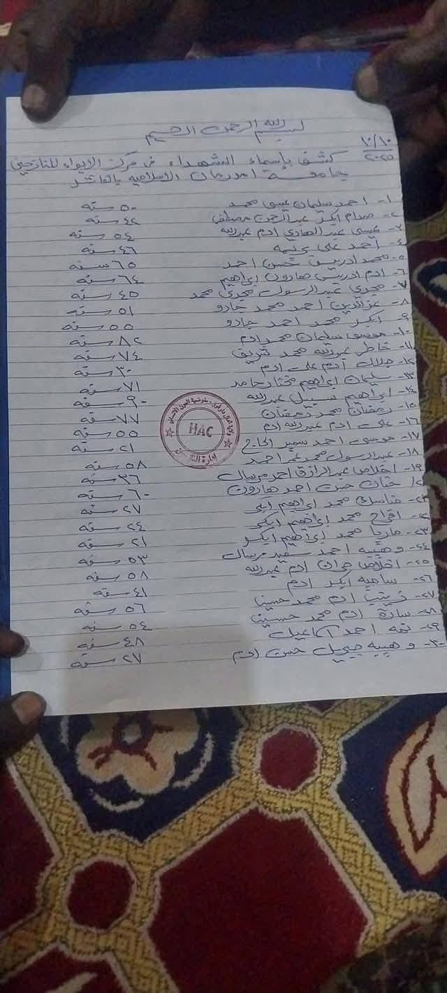 وحملت شبكة أطباء السودان قيادة الدعم السريع المسؤولية الكاملة عن هذه الجريمة.