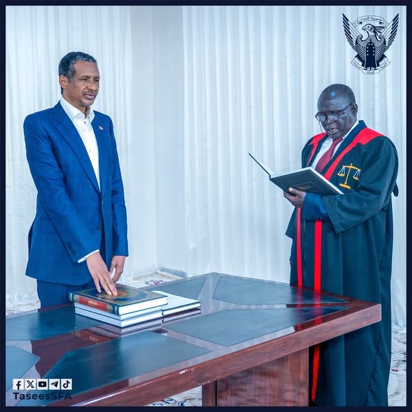 أدى الفريق أول محمد حمـــدان دقلو اليوم السبت الموافق 30 أغسطس 2025م اليمين الدستورية رئيساً للمجلس الرئاسي بجمهورية السودان، أمام رئيس القضاء مولانا رمضان إبراهيم شميلة، وذلك بالعاصمة نيالا في ولاية جنوب دارفور.