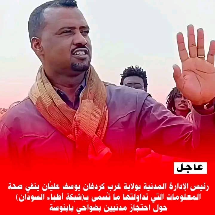 نفى الأستاذ يوسف عوض الله عليان رئيس الإدارة المدنية بولاية غرب كردفان فى بيانٍ صادر عن مكتبه الإعلامى بتأريخ الثلاثاء الموافق ١١ نوفمبر ٢٠٢٥م، صحة المعلومات التى تداولتها ( شبكةُ أطباء السودان ) حول احتجاز قوة تتبعُ لقوات الدعم السريع لعدد ٧ أسرة مدنية فى ضواحى مدينة بابنوسة.