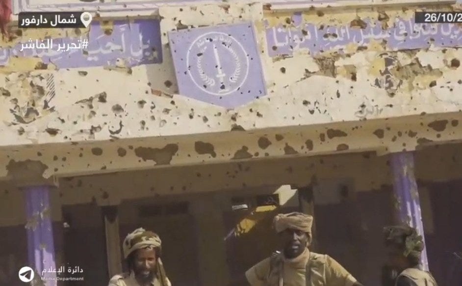 Below: RSF-produced propaganda film celebrating the fall of the 6th Division headquarters in El Fasher, North Darfur: