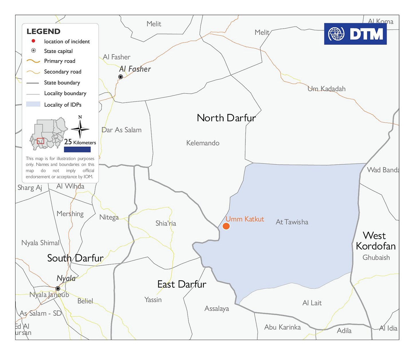اكدت الفرق الميدانية لمصفوفة تتبع النزوح، اندلاع حريق هائل يوم الاثنين 9 فبراير 2026، في قرية ام كتكوت بمحلية الطويشة في ولاية شمال دارفور، ما أدى إلى نزوح 98 أسرة.
