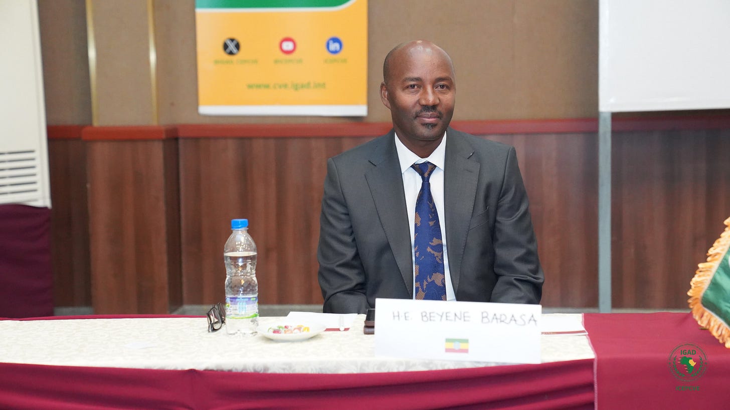 بينما انضم نائب رئيس اقليم سيداما، معالي بيين باراسا، إلى السكرتير التنفيذي للهيئة الحكومية الدولية المعنية بالتنمية، الدكتور ورقني قبيهو ، في حفل افتتاح ورشة العمل الإقليمية للاتصال الاستراتيجي للشباب والمجتمع المدني في مجال منع ومكافحة التطرف العنيف.