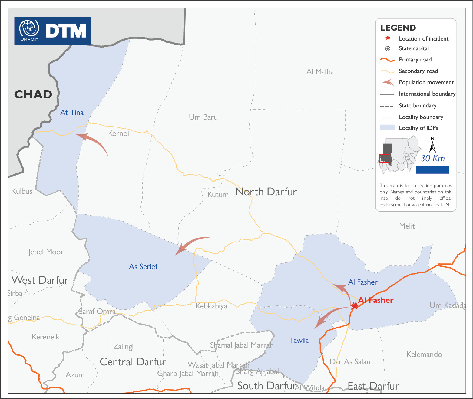وأفادت التقارير بأن الأسر نزحت إلي محليات السريف والطويلة والطينة بولاية شمال دارفور، اضافت لا تزال الأوضاع متوترة ومتقلبة للغاية.