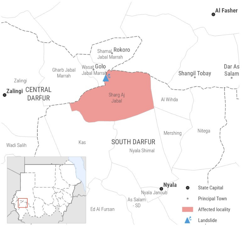 تم تنسيق جهود الاستجابة مع فرق الشركاء التي تم حشدها إلى موقع الانهيار الأرضي من قولو في وسط دارفور أو طويلة في شمال دارفور.