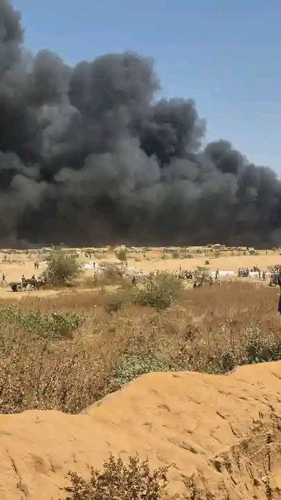 حريق في منطقة اديكونك بعد استهداف طيران الجيش السوداني مواقع فيها ’’ مواقع التواصل الاجتماعي ‘‘