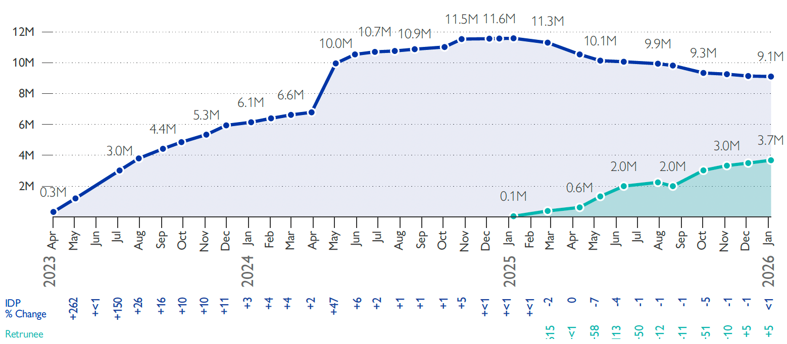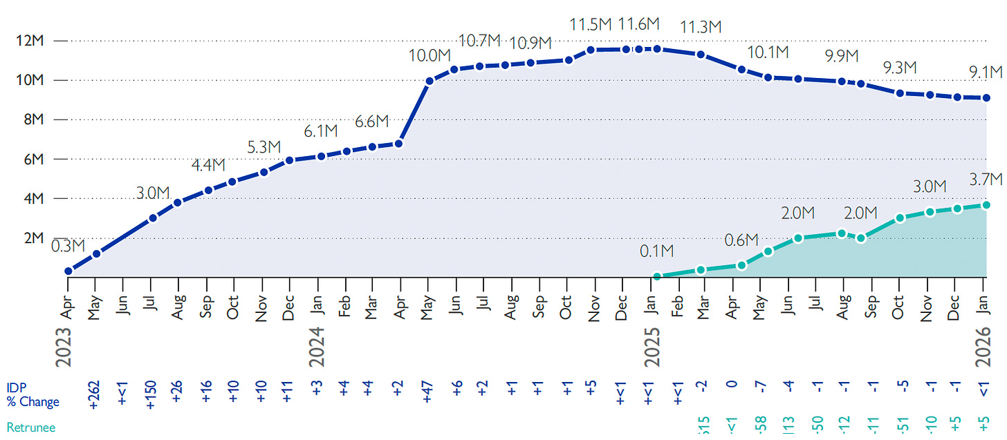 قالت المصفوفة في بيان لها صدر يوم الخميس 5 مارس 2026، ’’ تشمل هذه البيانات معلوماتٍ تفصيليةً عن الاحتياجات الإنسانية وإمكانية الوصول إلى الخدمات، ونوايا التنقل، والقيود المفروضة على الحركة، والبيانات الديموغرافية، إلى جانب مؤشراتٍ رئيسيةٍ أخرى ‘‘.