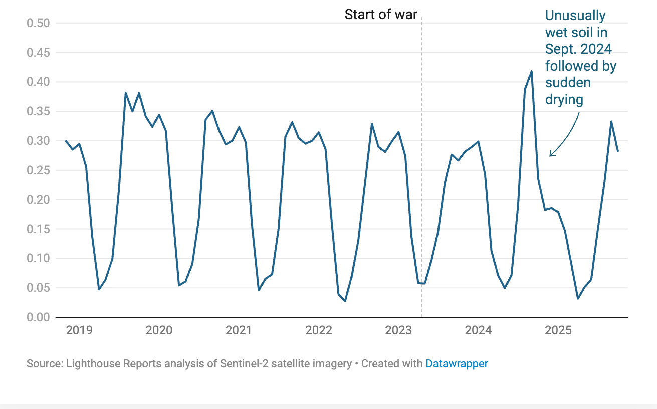 وكشفت صورا إلتقطها الدكتور بيتر آلدوس من فريق التحقيق بلايت هاوس ريبورتس وسودان وور مونيتور وبإستخدم نظم الإستشعار عن بعد عبر الأقمار الصناعية، كشفت عن تراجع ملحوظ في المساحات المزروعة خلال الأعوام القليلة الماضية، بينها حالات جفاف وعدم إنتظام في حركة إنسياب الري في أجزاء واسعة من المشروع.