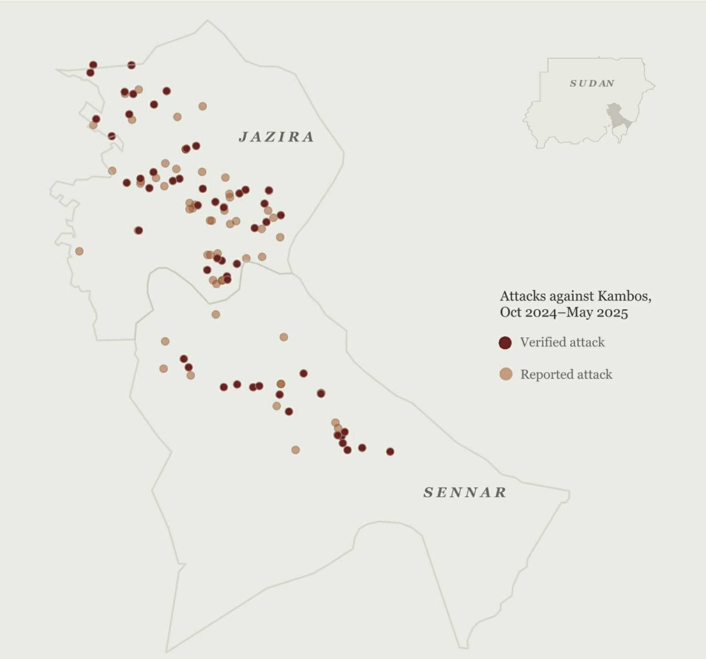 وفيما تبدو الهجمات على الكنابي والقرى التي تم إستهدافها على أنها إمتدادا للعمليات العسكرية وملاحقة لقوات الدعم السريع المنسحبة من مناطق الدندر وسنجة وشرقي الجزيرة، إلا أن عمليات تهجير ونهب تلك المناطق جاء بتخطيط مسبق وفق ما أفاد نافذين ذو صلة بجهاز الأمن والجيش بينهم مشاركين في هجمات وتدمير وتهجير القرى في مناطق غربي مدني والحصاحيصا وإمتداد المناقل.