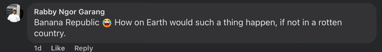 This latest scandal comes at a delicate time and will be viewed both within the regime and by the opposition as a sign that the president is losing his grip. On social media, hundreds of South Sudanese mocked the government or commented cynically, despite censorship controls that restrict criticism of the president in formal media channels such as newspapers and radio.