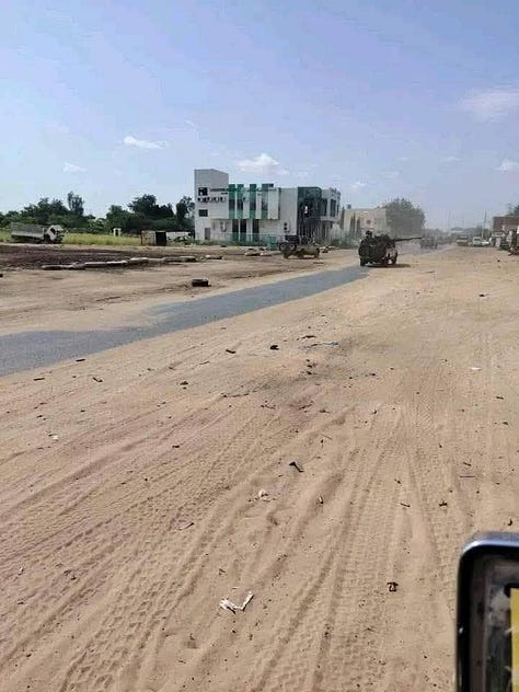 In this video, geolocated by Sudan War Monitor to 13°41'58.52"N 30°22'0.79"E, fighters from the Joint Forces of the Armed Struggle Movement are seen in pickup trucks firing west from the city center, likely during the initial moments of their entry into Bara.