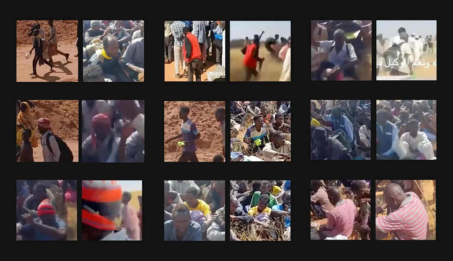 Geolocated footage and survivor accounts show RSF fighters intercepting fleeing civilians along escape routes, separating men from families, detaining individuals, and carrying out executions or ransom kidnappings.