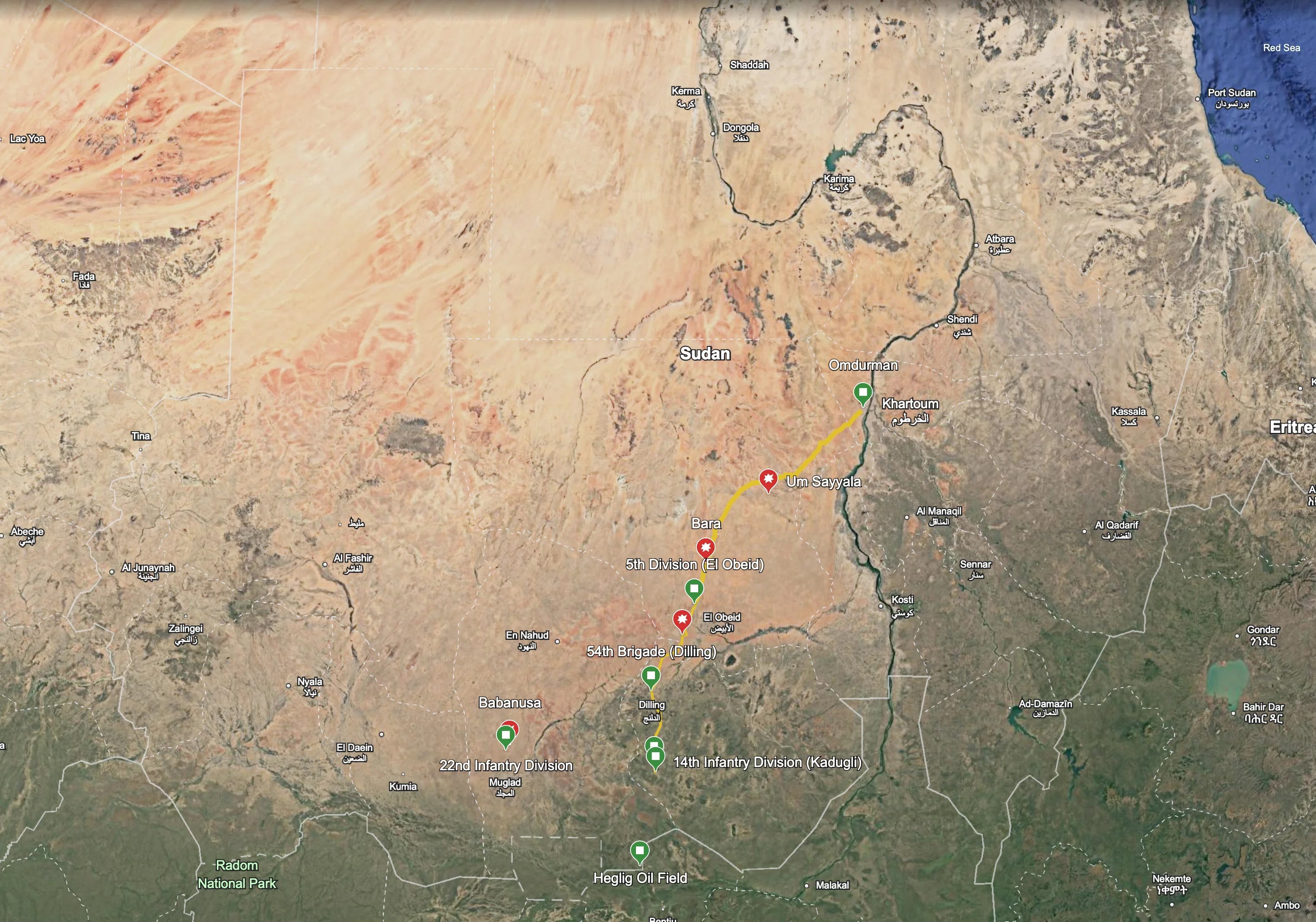 Um Sayyalla is a small village of minimal strategic value on its own. But its location in the far northeast of Kordofan, near the White Nile State border, and its proximity to the highway to Khartoum, indicate that RSF forces can operate close to this key supply route. Bara is similarly positioned along the same highway, which holds both military and economic importance.
